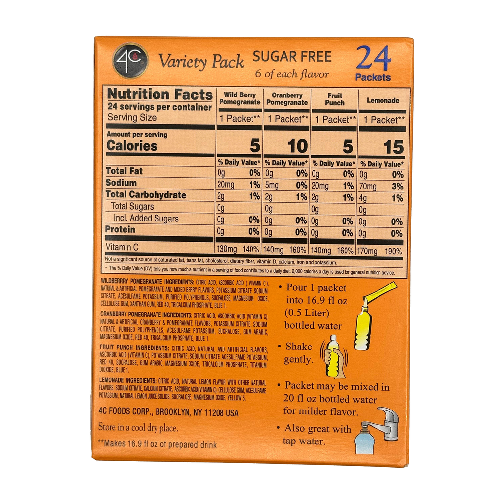 4C Sugar Free Drink Mix Sticks are a low carb, low calorie, sugar free drink mix that's sweetened with sucralose. 4C Sugar Free Drink Mix Sticks are a convenient alternative to sugary beverages.
