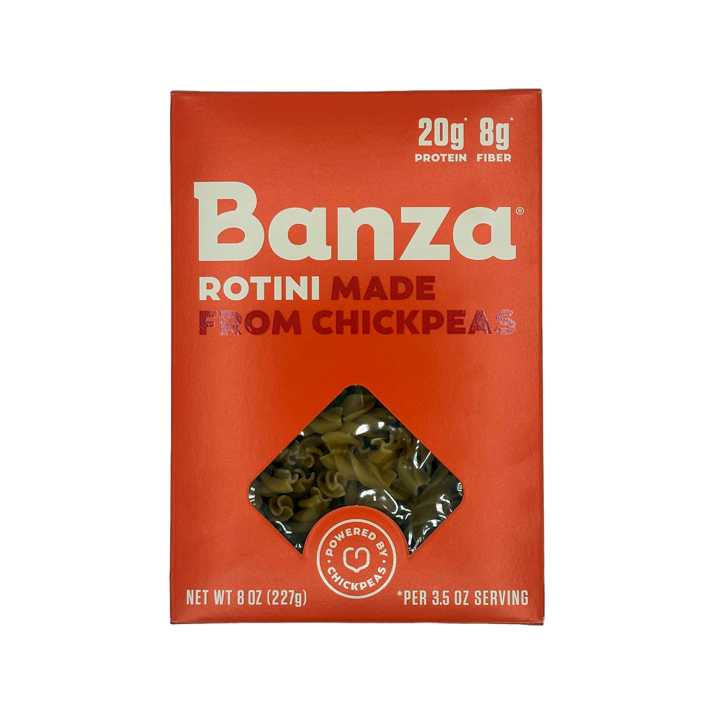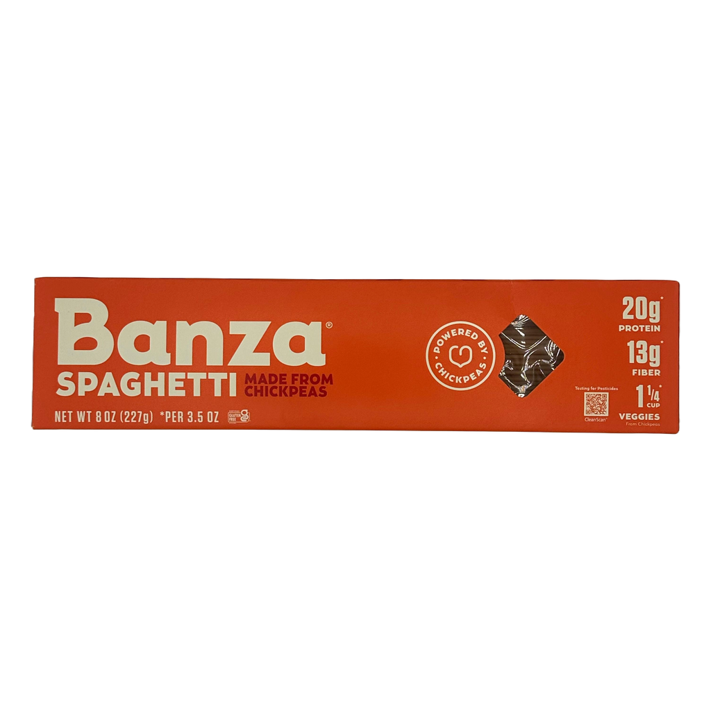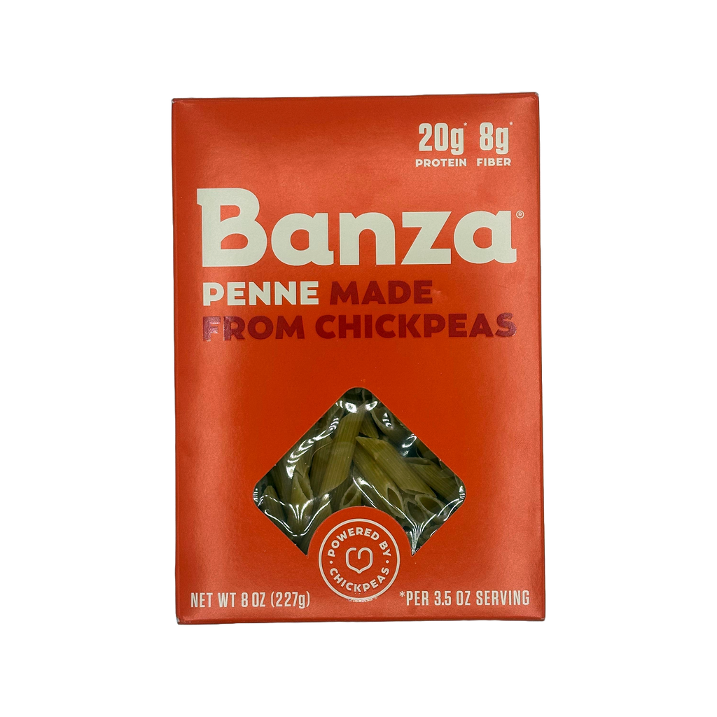 Banza Chickpea gluten free pasta is high in protein and fiber. One serving of Banza Chickpea Pasta has double the protein of regular pasta and more protein than a protein bar. Protein helps keep you full longer. Because Banza Chickpea Pasta has more protein and fiber, it has nearly half the net carbs as regular pasta. Banza has more than four times as much fiber as regular pasta per serving and more fiber than a bowl of bran cereal. Banza pasta is a great option for those seeking a lower carb pasta and gluten free pasta.