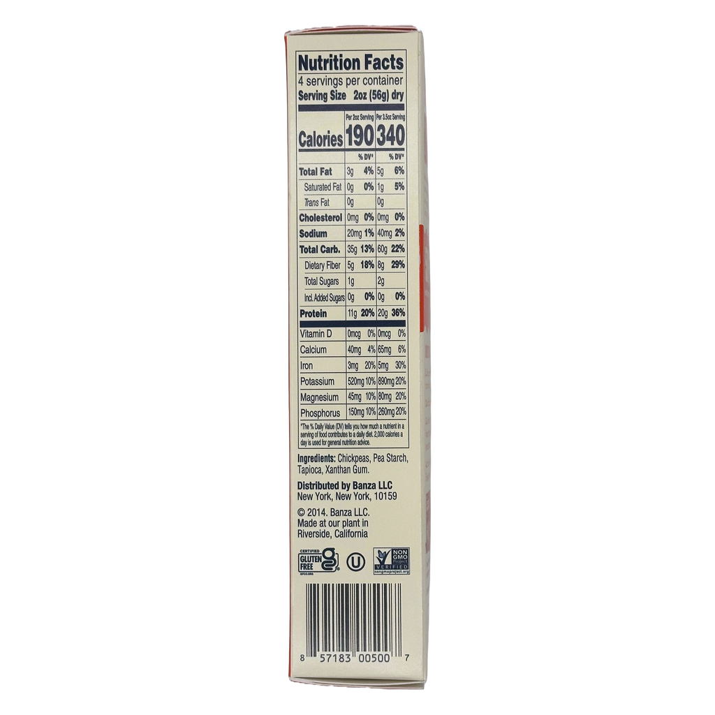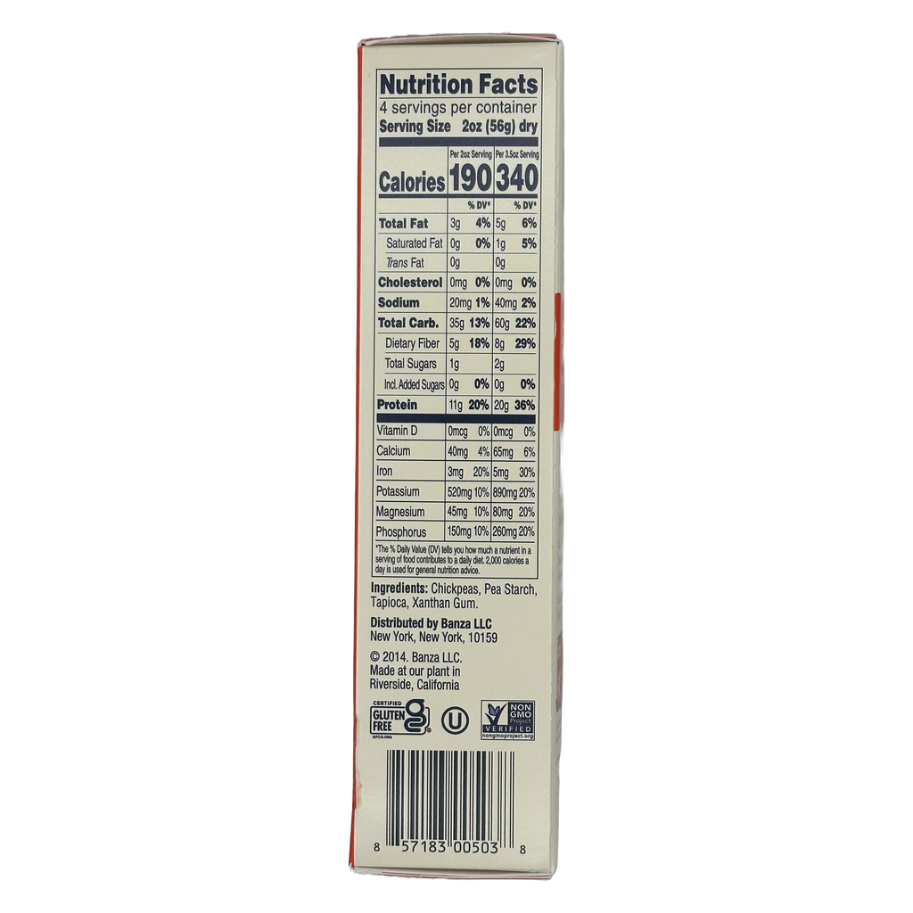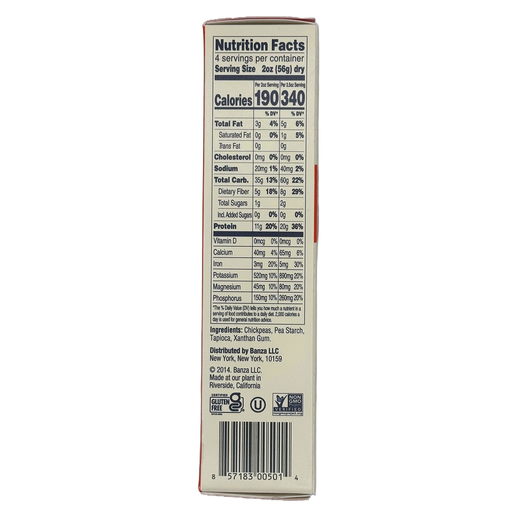 Banza Chickpea gluten free pasta is high in protein and fiber. One serving of Banza Chickpea Pasta has double the protein of regular pasta and more protein than a protein bar. Protein helps keep you full longer. Because Banza Chickpea Pasta has more protein and fiber, it has nearly half the net carbs as regular pasta. Banza has more than four times as much fiber as regular pasta per serving and more fiber than a bowl of bran cereal. Banza pasta is a great option for those seeking a lower carb pasta and gluten free pasta.