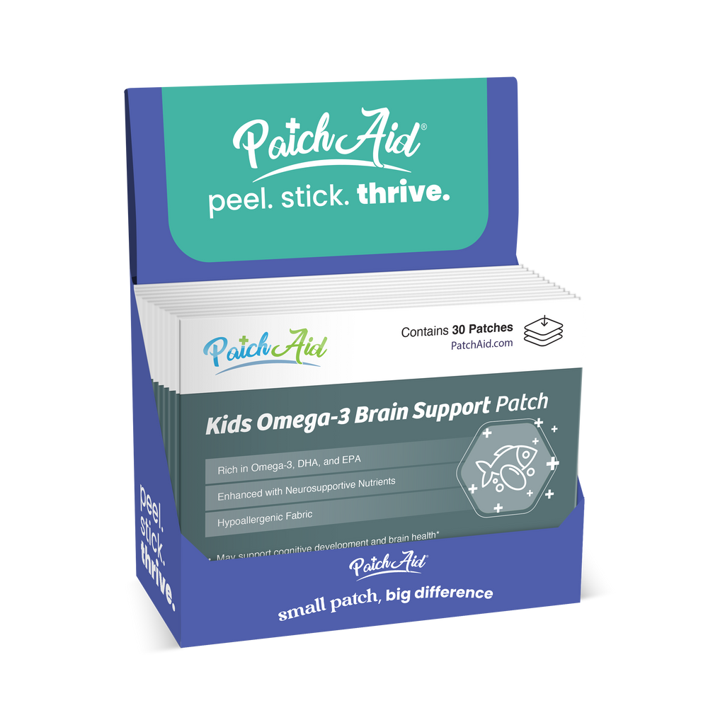 Help your child’s mind thrive with the Kids Omega-3 Brain Support Patch by PatchAid! Packed with a rich blend of Omega-3 fatty acids, DHA, and EPA, this patch is specially designed to support cognitive development, enhance focus, and promote overall mental wellness. Combined with neurosupportive nutrients and gentle on sensitive skin, this hypoallergenic patch is an easy, convenient way to help fuel your child’s brain health daily.