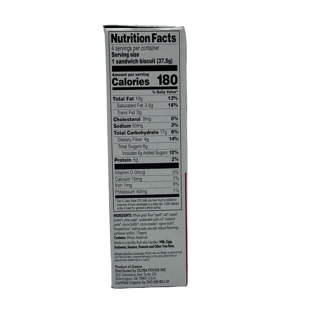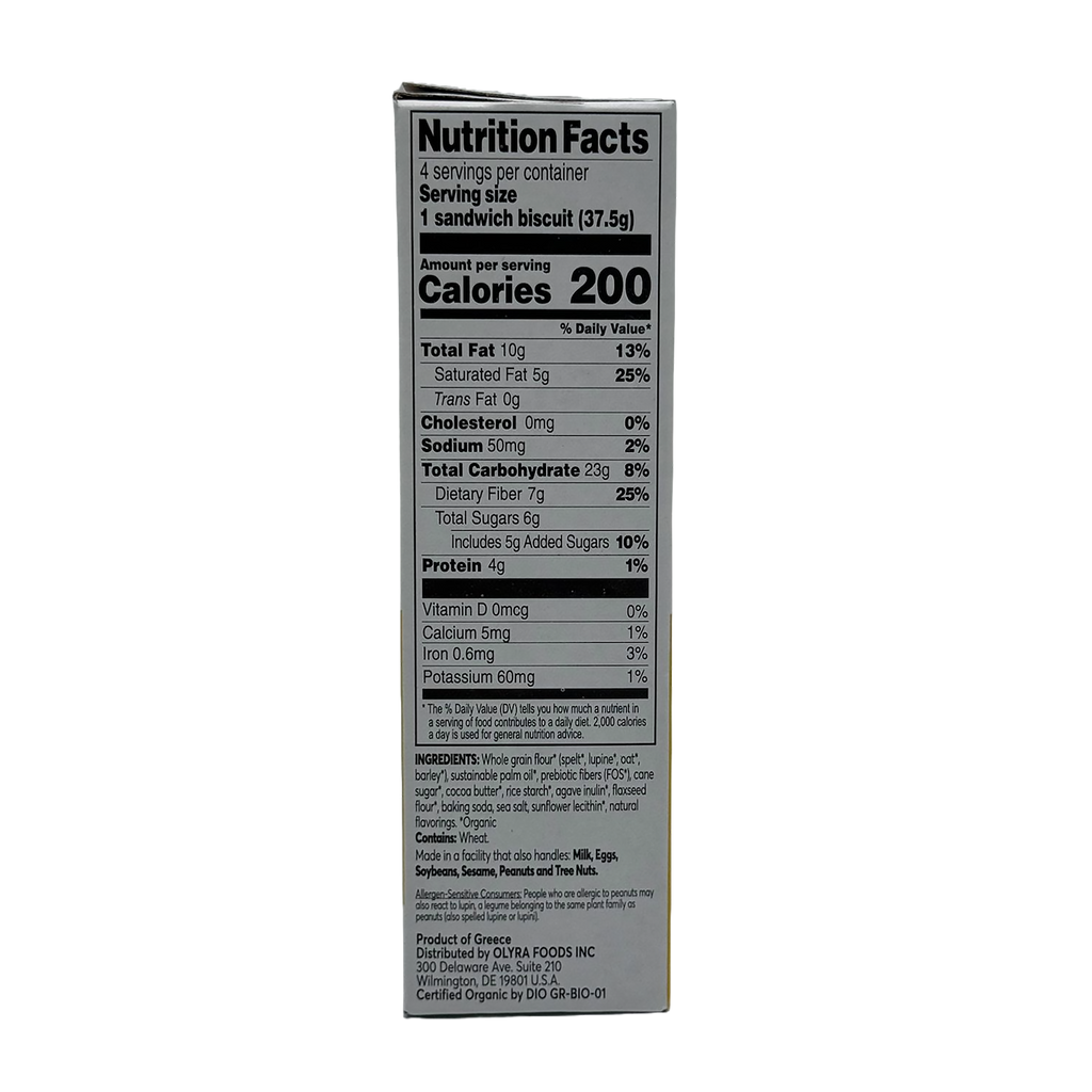 Every biscuit sandwich features a satisfying, crunchy outer biscuit made from whole grain flour blends (like spelt, lupine, barley, and oat) layered with a creamy crème filling. It’s the kind of breakfast you can feel good about: vegan, verified non-GMO, and packed with ingredients sourced with care.