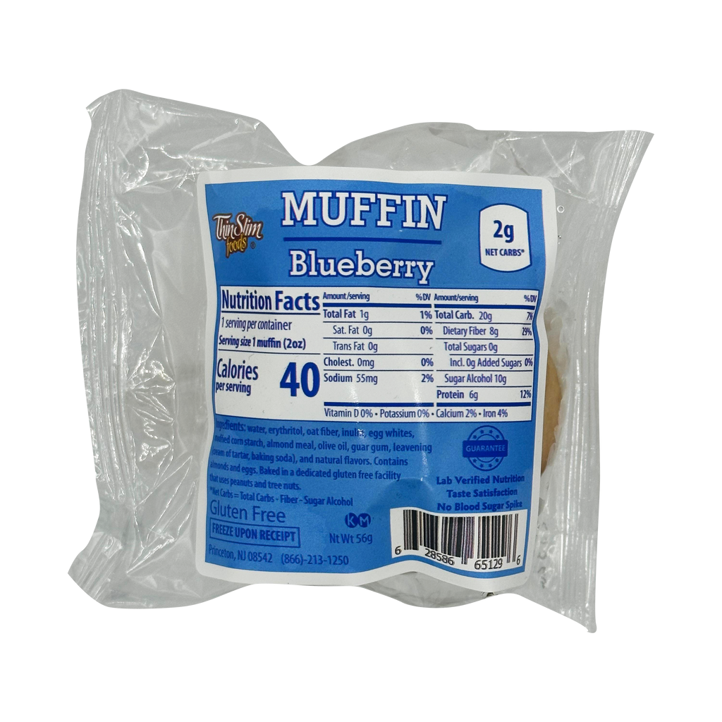 Note: ThinSlim Blueberry Muffins have a light blueberry taste. There are no actual blueberries in the muffins due to the extra carbs those would add, but instead there are blueberry skins.