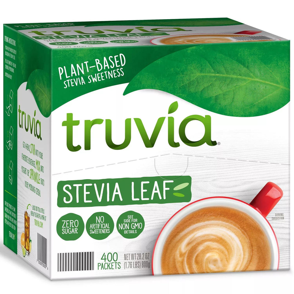 Truvia is a low carb, sugar free sweetener made from three ingredients: stevia leaf extract, natural flavors, and erythritol. One packet of Truvia provides the same sweetness as two teaspoons of sugar. Truvia is a great sugar substitute for people living a low carb lifestyle. Sprinkle Truvia on anything you want to add sweetness to. Truvia can also be used in cooking and baking.