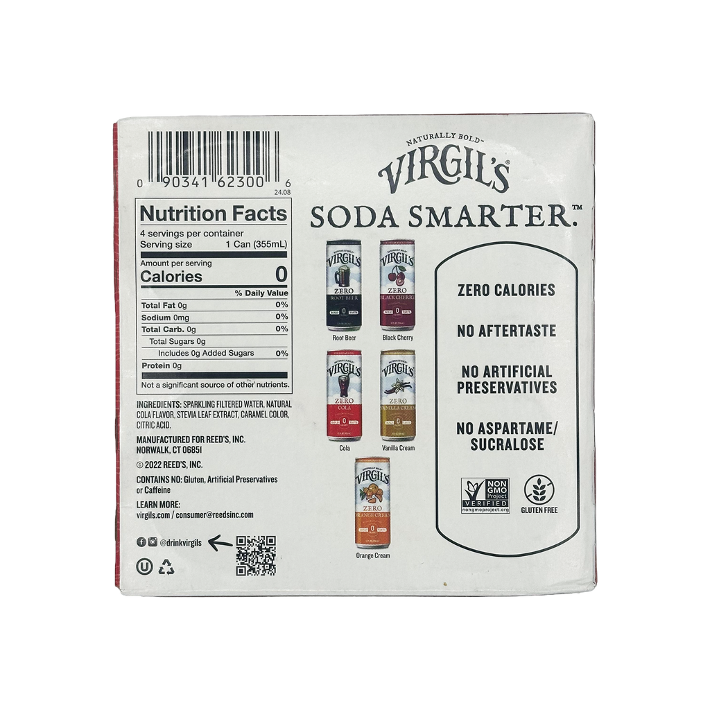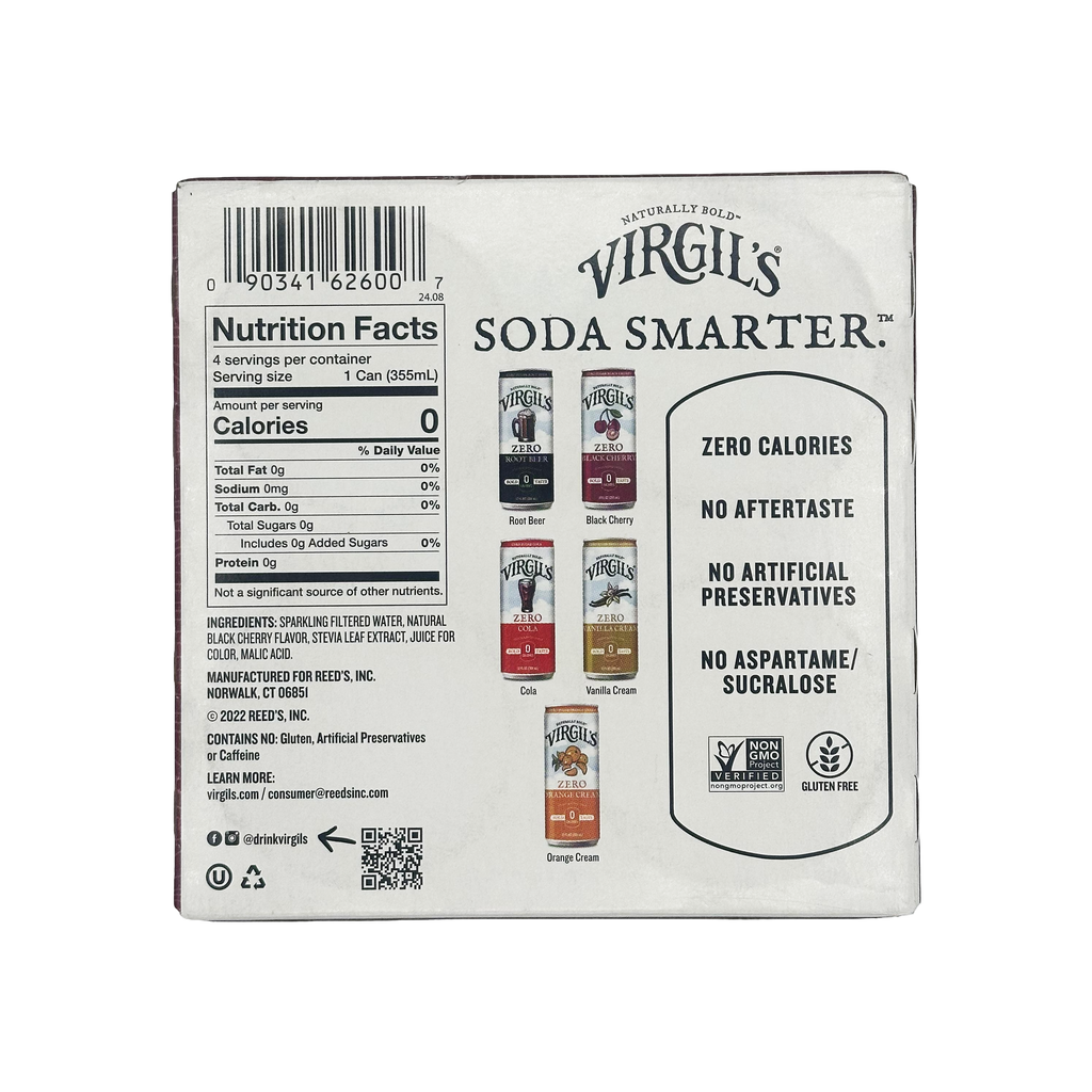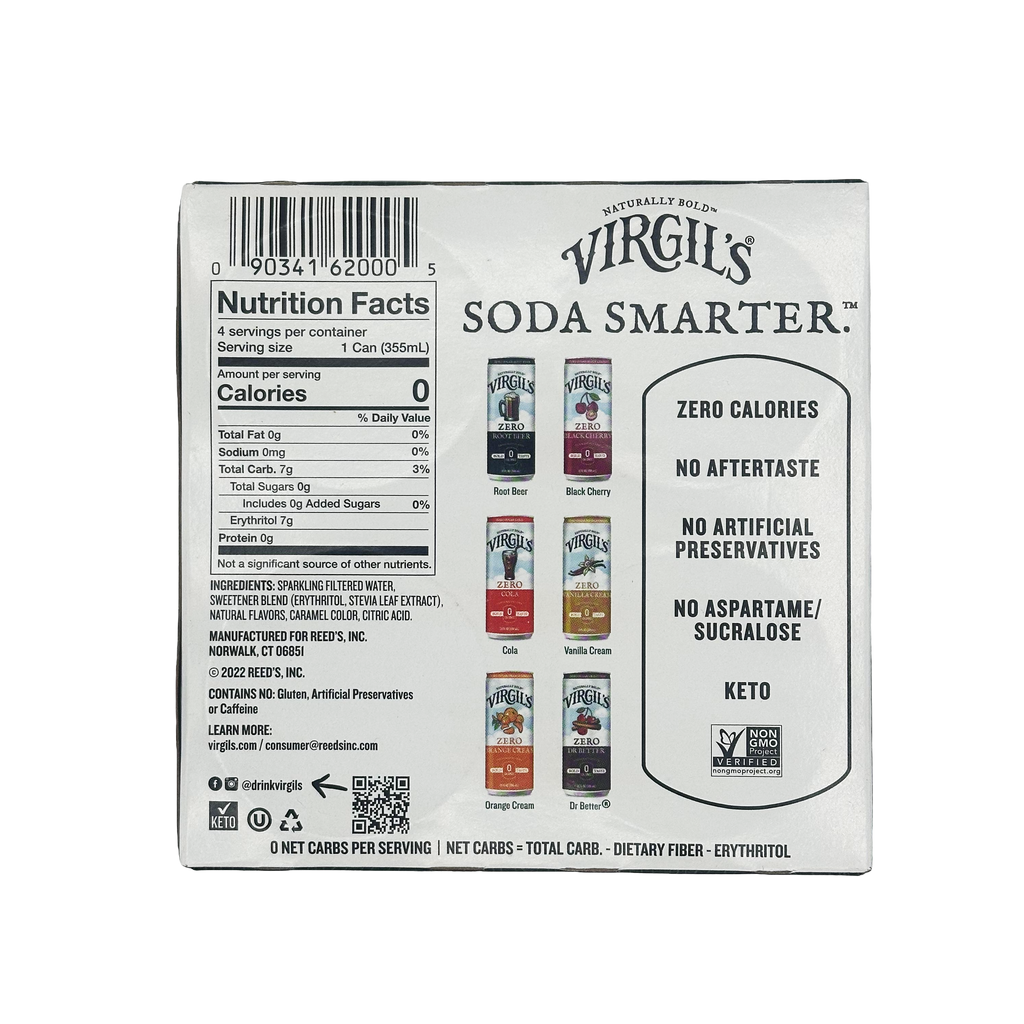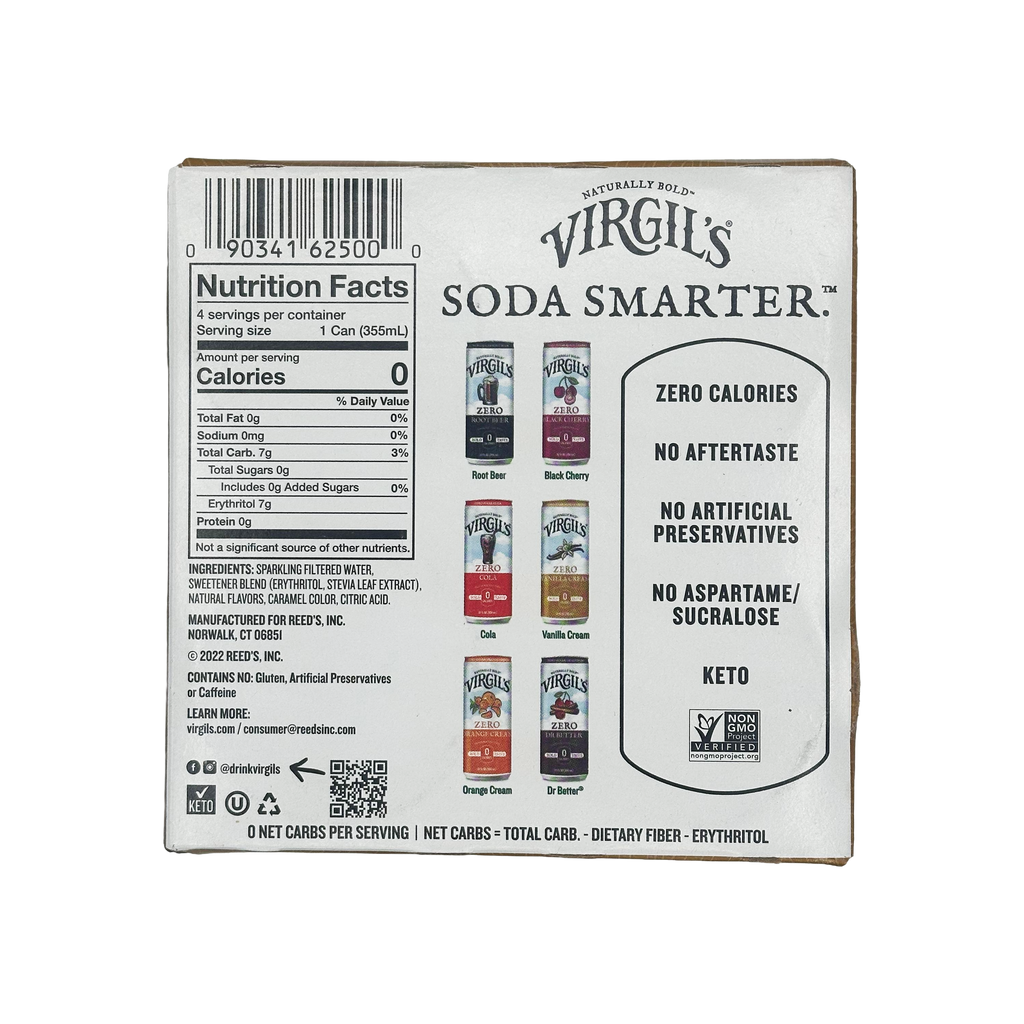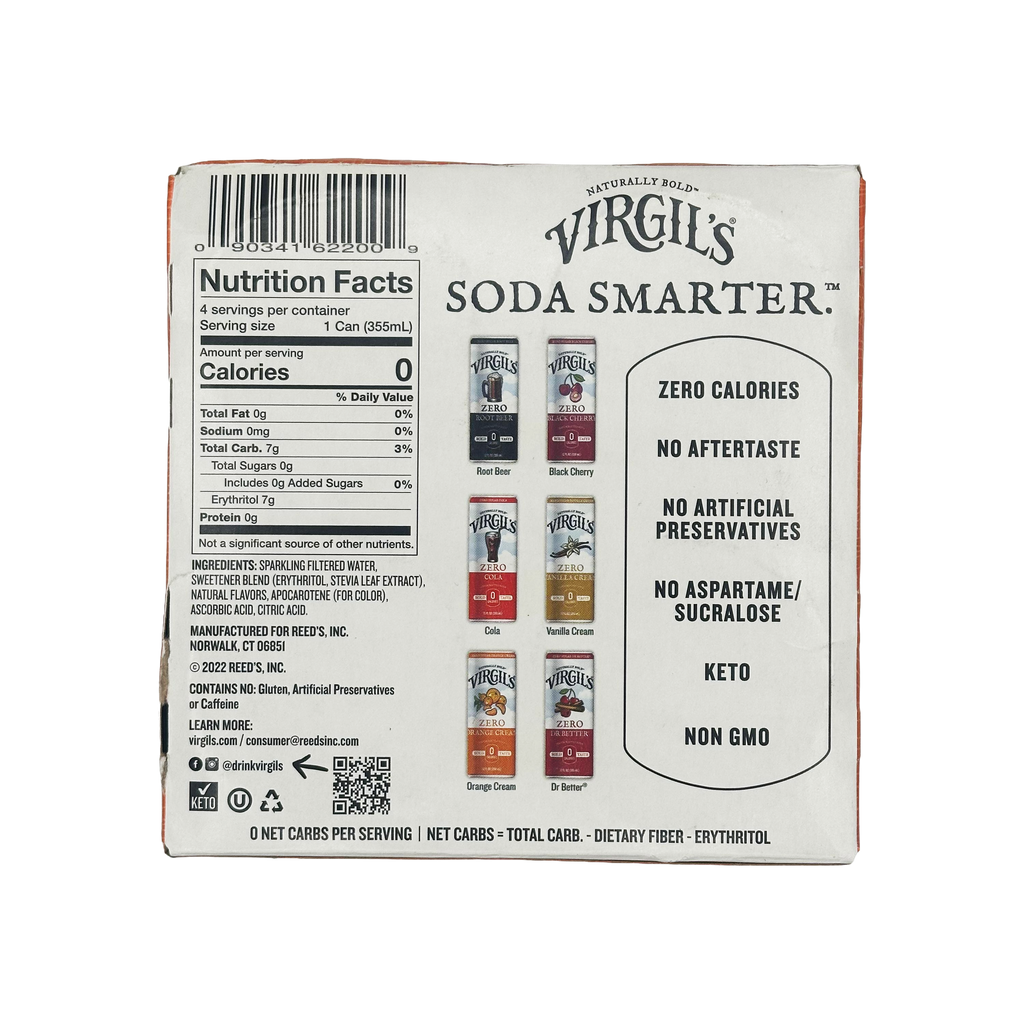 Virgil's Zero Sugar Soda is an all-natural, zero sugar, zero calorie, zero carb beverage. Made with a proprietary low carb sweetener (Erythritol, Stevia, Monk Fruit), Virgil's Zero Sugar Soda is a sugar free soda that's perfect for the whole family.