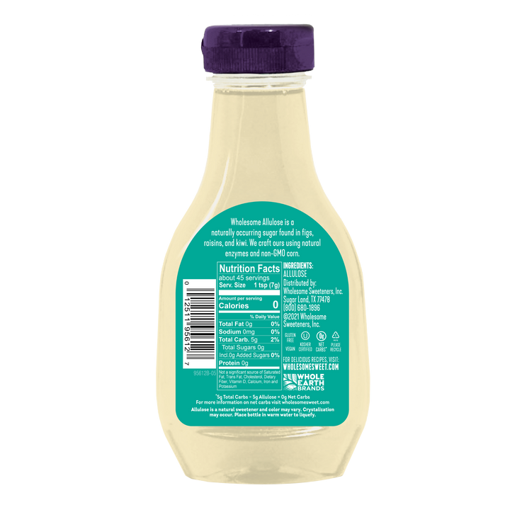 Wholesome Sweeteners Allulose Liquid Sweetener is a low carb, keto-certfied, calorie free sweetener that tastes like sugar. Allulose has a mild clean sweetness with no bitterness or aftertaste. Allulose is found naturally in figs, raisins and kiwi. Wholesome Allulose is made from non-GMO corn, and contains no fillers, preservatives, or flavors ... making it the perfect low carb, zero calorie sweetener. Liquid Allulose is perfect for hot and cold beverages, smoothies, cocktails, or drizzling.